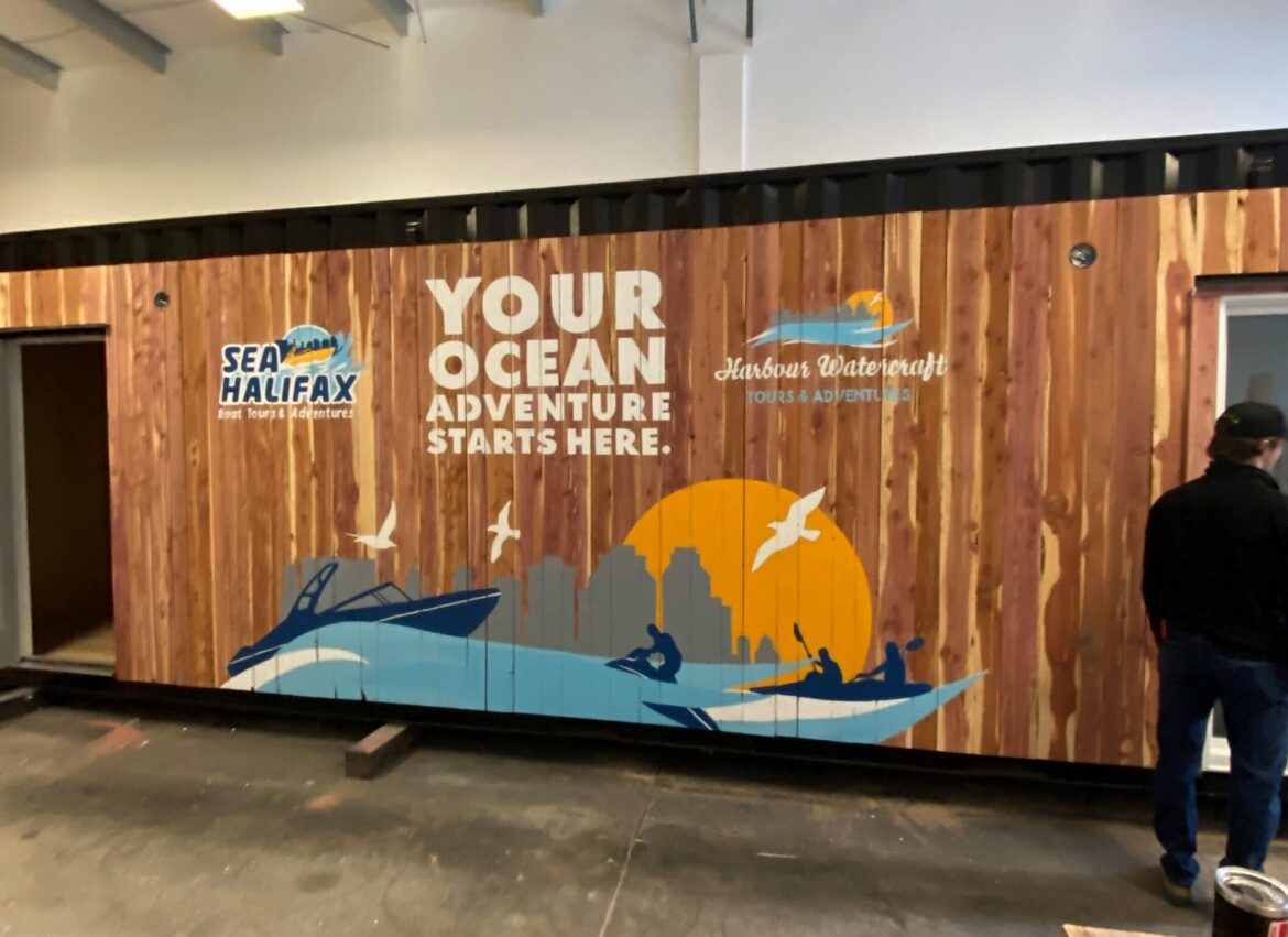This unit was created for the owners of Harbour Side Watercraft to have a solid store front on the Halifax waterfront for their water tour business. This 40-foot unit not only worked as a store front and check in counter but was also a training facility where individuals would take their water certification course before getting on the boats and sea doo’s.