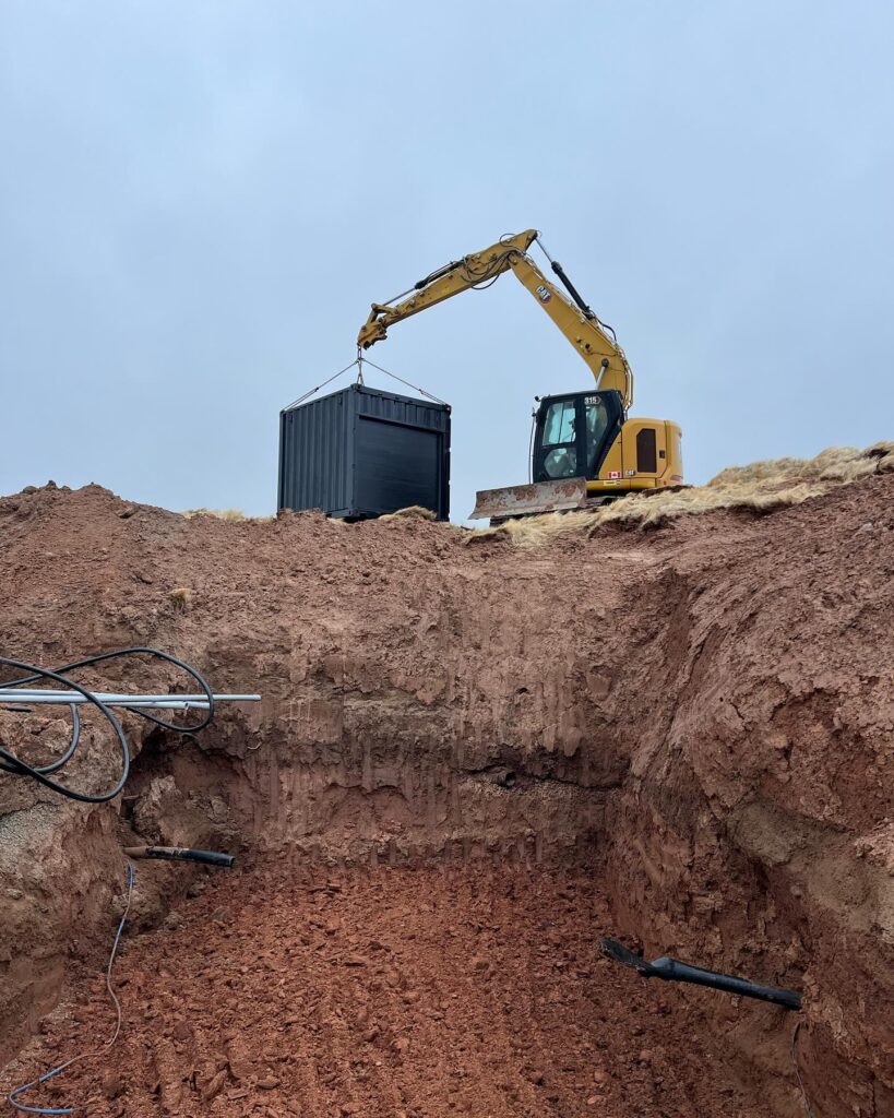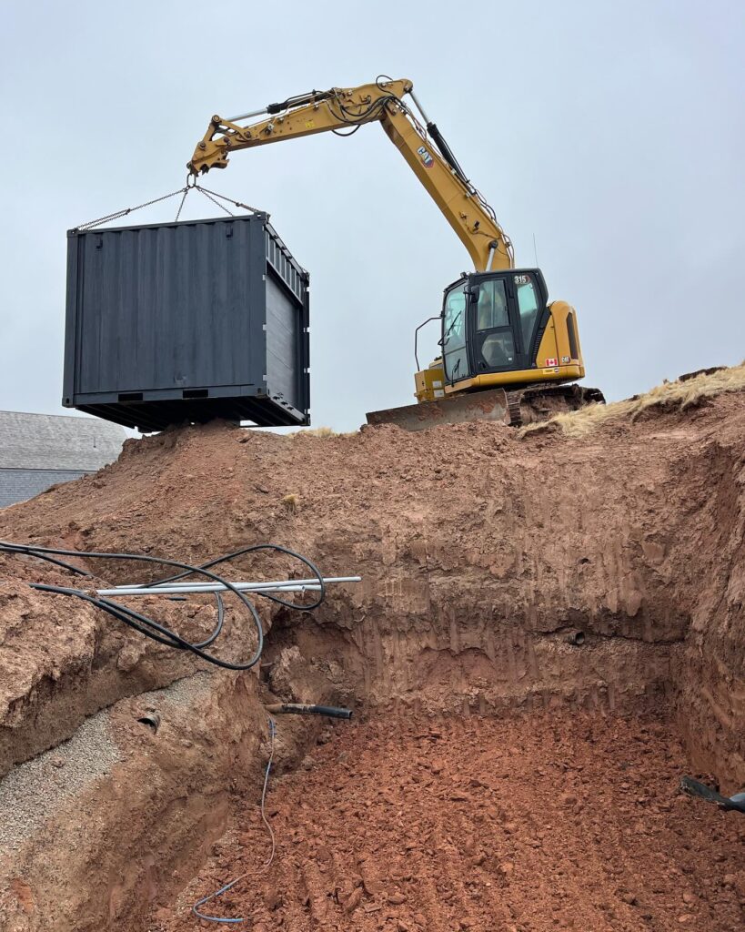 Cabot Links and Cabot Cliffs golf courses “Thinking outside the Box” and using SaltBox Modern Engineered Spaces to show case just some of the ways containers can be used. Today was install day for our second in ground structure.